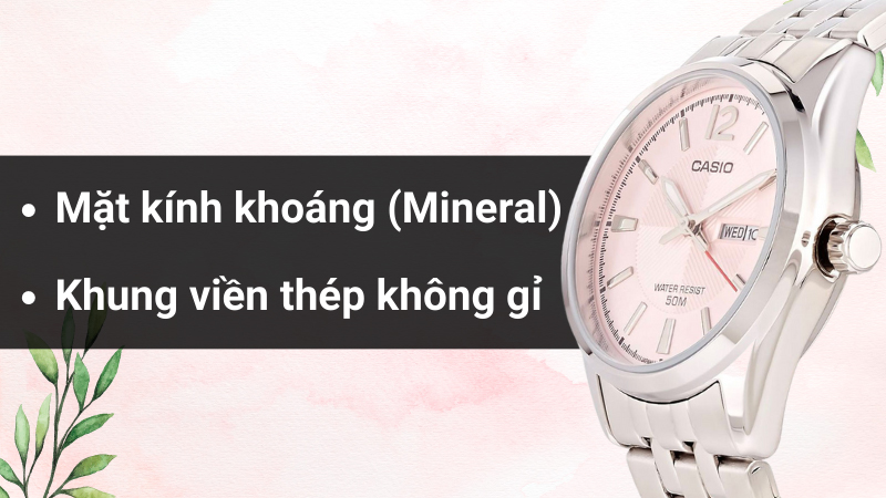 • Đồng hồ Nữ Casio LTP-1335D-5AVDF có đường kính mặt 30 mm phù hợp với các nàng có cổ tay vừa và nhỏ được gia công từ chất liệu kính khoáng có đặc tính cứng cáp, bền bỉ trước các va đập thông thường cùng khả năng đánh bóng đánh bay đi những vết xước nhẹ chẳng may trong quá trình sử dụng.