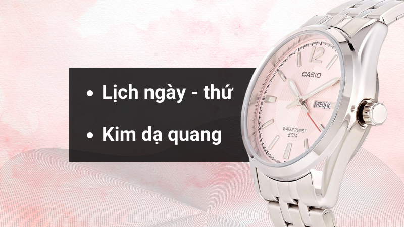 • Để hỗ trợ bạn kiểm soát thời gian tốt hơn hãng có thiết kế thêm ô lịch ngày và thứ ở vị trí 3H vừa tiện lợi lại thuận tiện trong việc xem giờ tốt. Hơn nữa chiếc đồng hồ còn được phủ kim dạ quang trên kim phút và giờ, vì thế bạn có thể yên tâm sử dụng ngay cả trong điều kiện thiếu sáng.