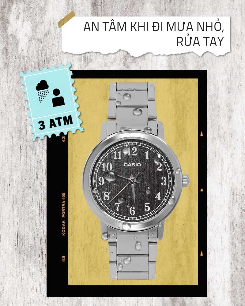 - Độ chống nước 3 ATM: An toàn khi đeo đi mưa, rửa tay, không mang khi tắm, bơi lội