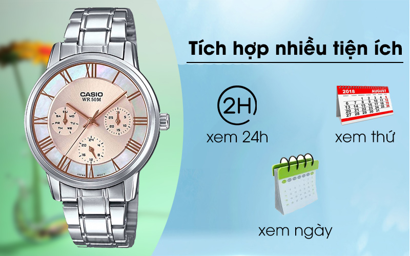 Sản phẩm được trang bị nhiều tiện ích như đồng hồ 24 giờ, lịch ngày, lịch thứ giúp đồng hồ đồng hành cùng bạn nhiều hơn trong sinh hoạt hàng ngày và chủ động các lịch trình.