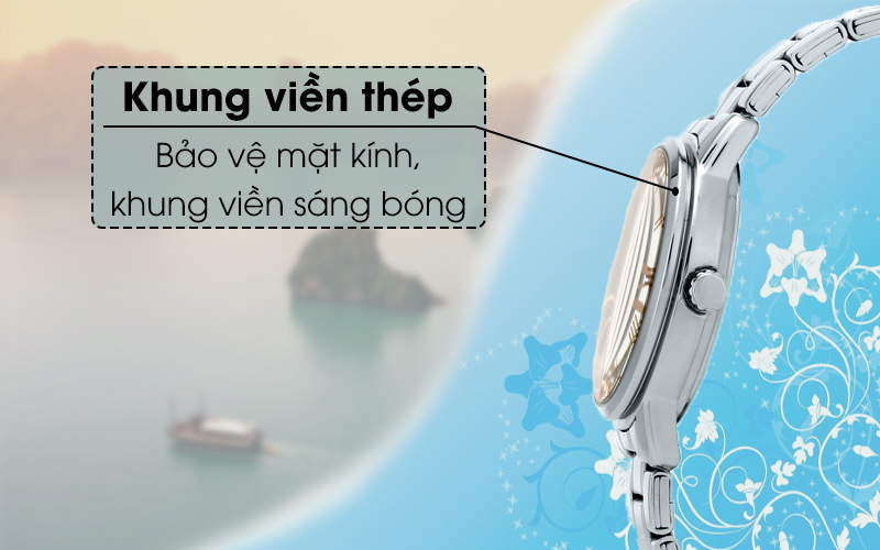 Mặt đồng hồ với chi tiết kim chỉ và số La Mã là những nét thu hút các bạn nữ nhiều nhất. Được bảo vệ bởi một lớp kính khoáng chống trầy giúp chiếc đồng hồ kim này luôn mới.