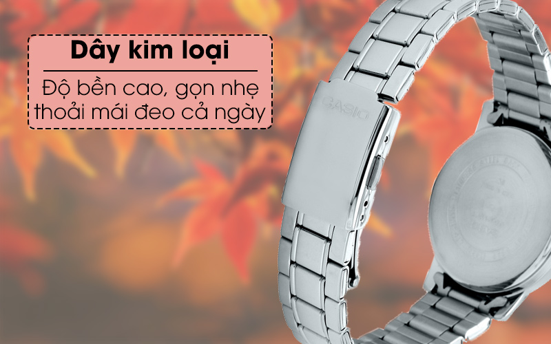 Chất liệu kim loại cao cấp không chỉ mang lại sự thoải mái khi đeo mà còn tăng thêm sự tự tin khi mang mẫu đồng hồ quartz này phối cùng đồ công sở hay đồ sang trọng.