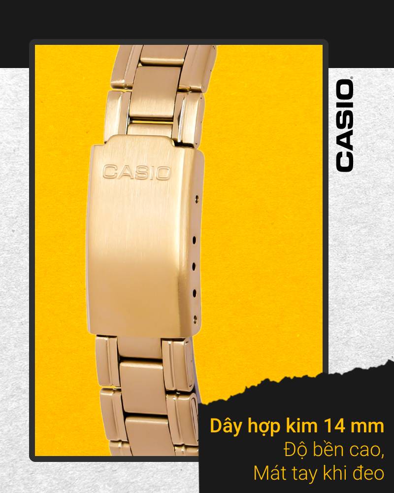- Đồng hồ sở hữu khung viền thép không gỉ chịu va đập tốt và dây đeo hợp kim sang trọng, dễ dàng đánh bóng khi bị trầy xước nhẹ