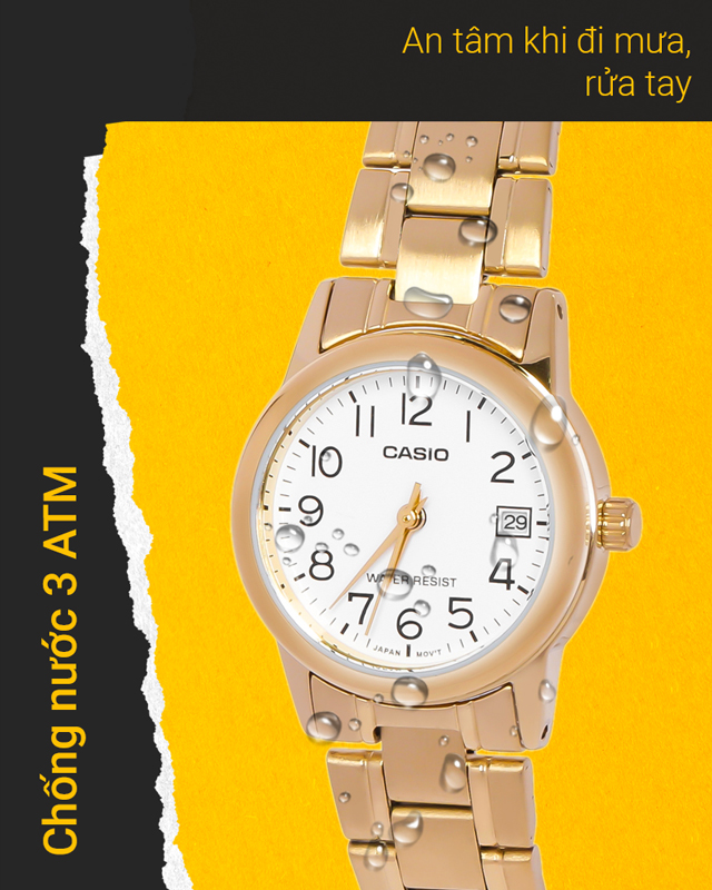 - Mẫu đồng hồ nữ này có hệ số chống nước là 3 ATM vì vậy hoàn toàn có thể yên tâm đeo khi rửa tay, đi mưa, không đeo khi bơi, lặn