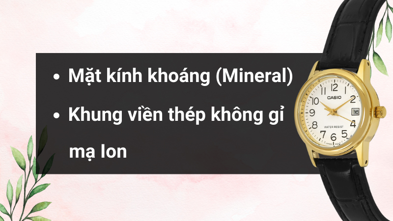 • Khung viền và dây đeo đều được làm từ thép không gỉ mạ thêm Ion bền bỉ, có kết cấu chắc chắn, dễ dàng lau chùi khi bám bụi bẩn.