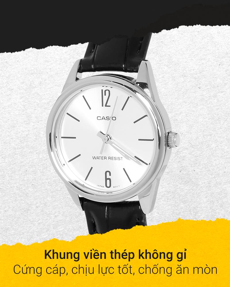 - Khung viền thép không gỉ cứng cáp, có độ bền cao, chịu lực tốt, chống ăn mòn. Dây da nhẹ nhàng, êm ái cho bạn thoải mái suốt ngày dài