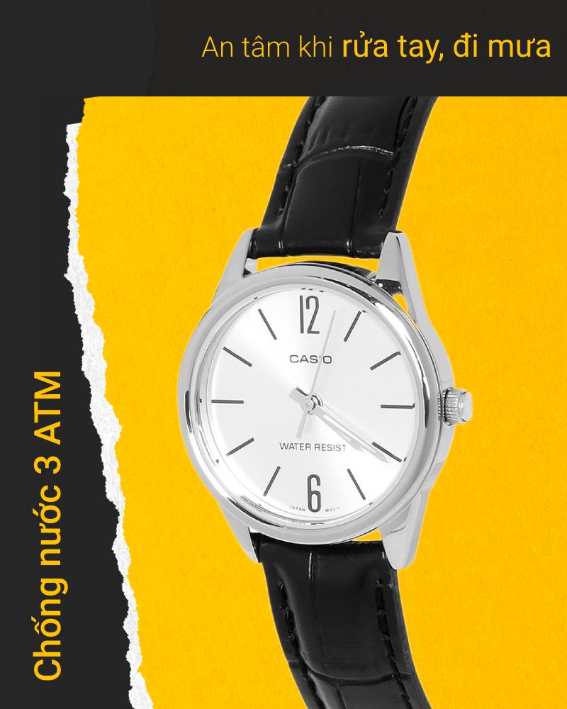 - Đồng hồ có hệ số chống nước 30m, an toàn khi rửa tay hay đi mưa. Không đeo đồng hồ này khi đi tắm