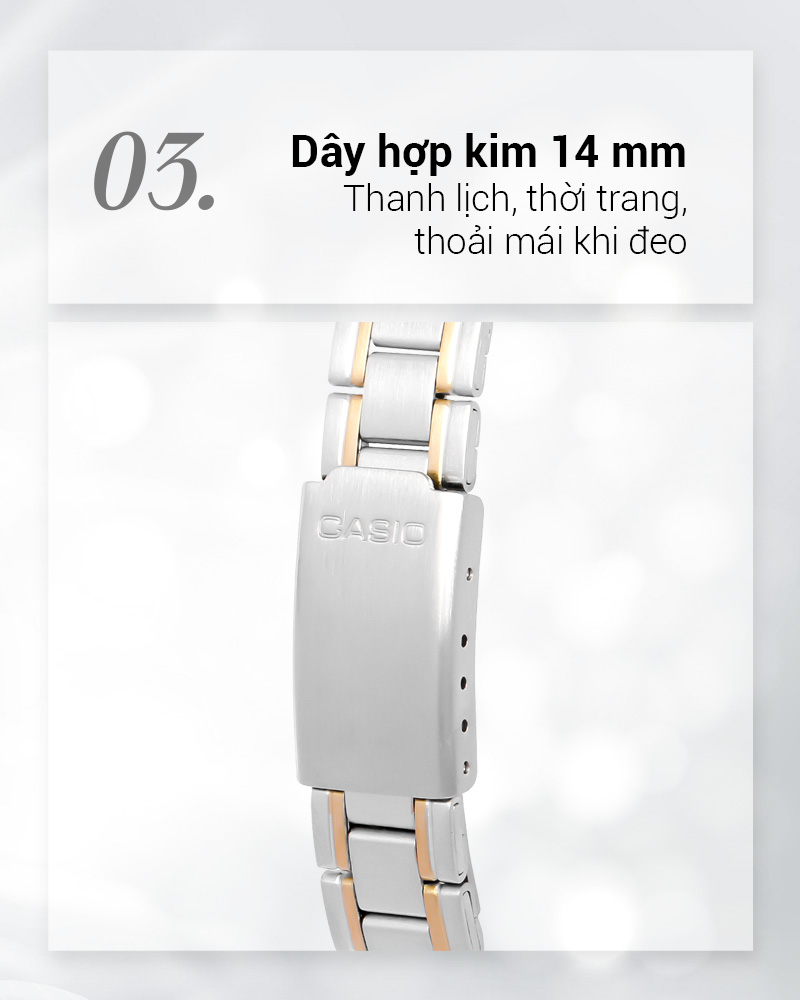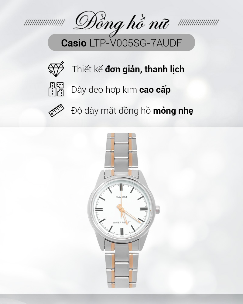 - Đồng hồ có khung viền làm từ thép không gỉ cùng dây đeo hợp kim sáng bóng