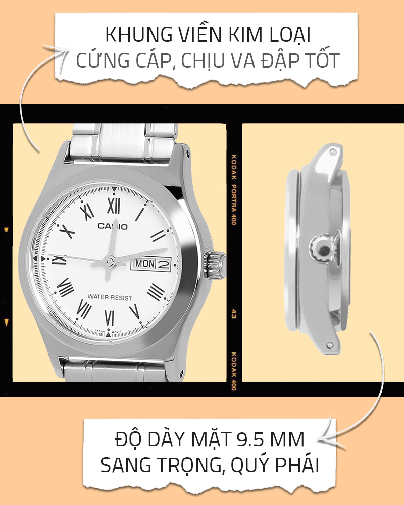 - Đồng hồ được trang bị khung viền kim loại cùng dây đeo hợp kim sáng bóng, bền bỉ
