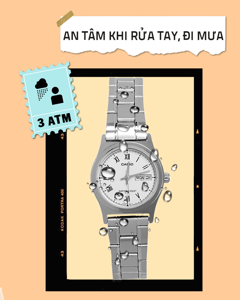 - Chỉ số chống nước của chiếc đồng hồ nữ này là 3 ATM nên hoàn toàn yên tâm đeo khi rửa tay, đi mưa, không đeo khi tắm, bơi, lặn