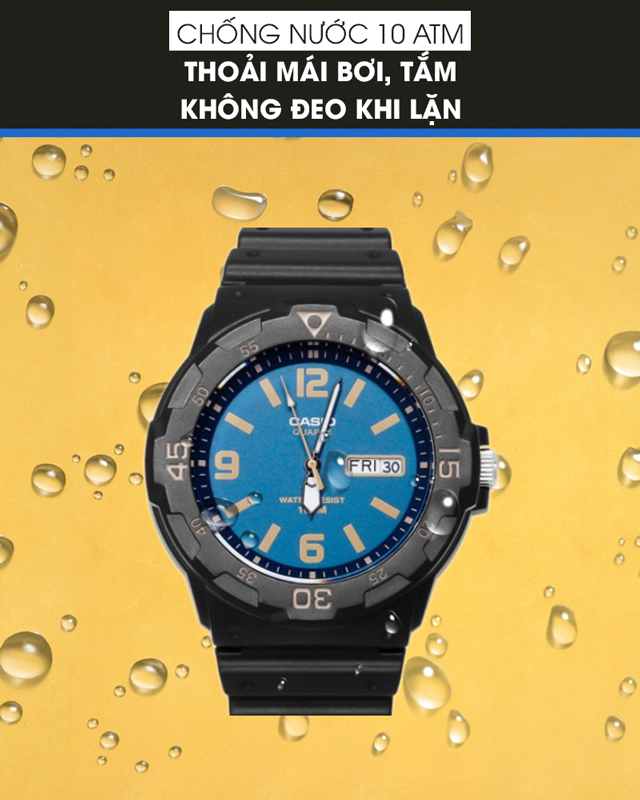 - Mẫu đồng hồ nam này có hệ số chống nước là 10 ATM vì vậy hoàn toàn có thể yên tâm đeo khi bơi, tắm, rửa tay, đi mưa, không đeo đồng hồ khi lặn