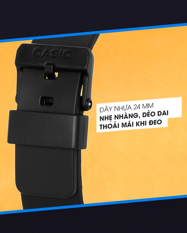 - Đồng hồ sở hữu khung viền nhựa PC trọng lượng nhẹ và dây đeo nhựa không thấm nước