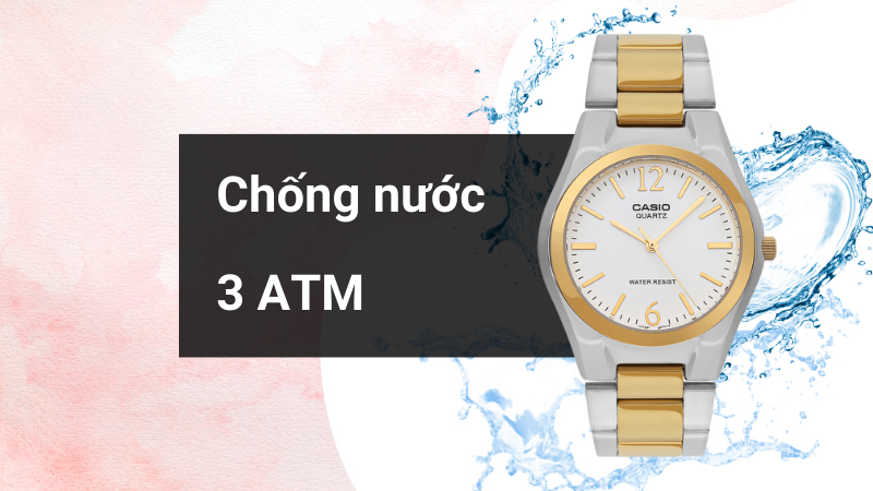 Thoải mái đeo mẫu đồng hồ kim này khi đi mưa, rửa tay vì nó có hệ số chống nước 3 ATM, không mang khi tắm, bơi, lặn
