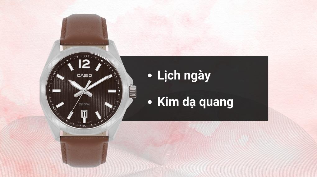 • Đồng hồ Casio 42 mm Nam MTP-E725L-5AVDF - một trong những sản phẩm mới của hãng, với thiết kế cổ điển lấy tone màu nâu làm chủ đạo ở cả phần dây và mặt số đồng hồ, làm ánh lên phần kim và cọc số màu sáng, đem lại sự thu hút về một quý ông cổ điển, thanh lịch nhưng không kém phần sang trọng.