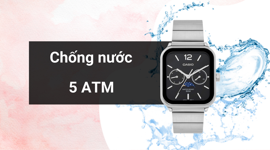 • Sản phẩm này còn có khả năng chống nước đến độ sâu 5 ATM, phù hợp với các hoạt động hàng ngày như đi mưa, rửa tay hay đi tắm, nhưng không nên sử dụng khi bơi.