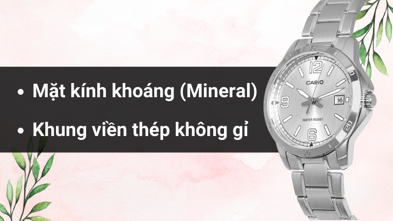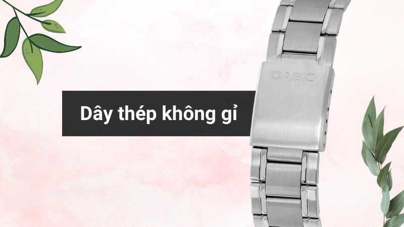 • Các sản phẩm của đồng hồ Casio luôn được hãng chọn vật liệu cho khung viền và dây đeo một tỉ mỉ và chi tiết. Khung viền và dây đeo của chiếc đồng hồ này đều được làm từ thép không gỉ bền bỉ, có kết cấu chắc chắn, dễ dàng lau chùi khi bám bụi bẩn.