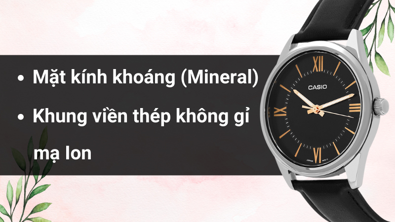 • Điểm nhấn của chiếc đồng hồ này là phần mặt số mang một vẻ rất cổ điển và hợp thời trang cùng với mặt kính khoáng tạo nên cảm giác sáng bóng, dễ nhìn và đặc biệt có chống va đập cực tốt.