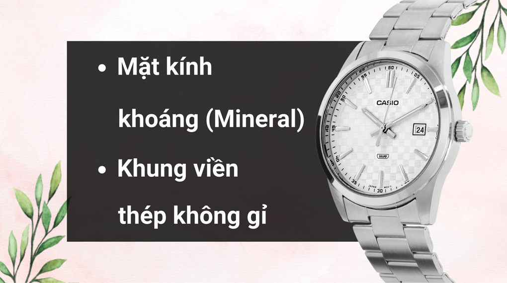 • Nổi bật với sắc bạc tinh khôi, đồng hồ Casio 41 mm Nam MTP-VD03D-7AUDF vừa có nét tinh tế của cổ điển nhưng pha lẫn sự sành điệu của hiện đại. Từ phần cọc số, kim chỉ giờ, khung viền màu bạc đến họa tiết ca rô tinh tế. Với mẫu thiết kế này các chàng trai có thể phối phù hợp với nhiều trang phục khi đi làm, đi chơi hẹn hò.