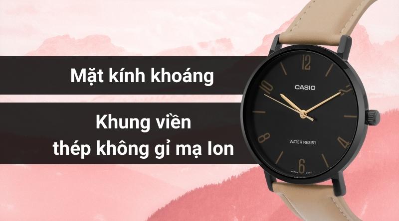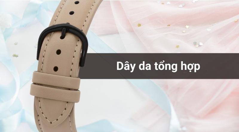 - Đồng hồ được trang bị khung viền thép không gỉ mạ Ion sáng bóng, tạo cảm giác mát tay khi đeo. Dây đeo làm từ da tổng hợp mềm mại, tạo cảm giác thoải mái khi đeo.