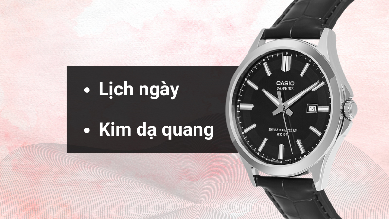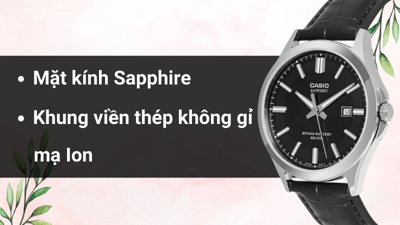 • Đồng hồ Casio là một thương hiệu đến từ xứ sở hoa anh đào, sở hữu nhiều mẫu đồng hồ đơn giản nhưng vô cùng tinh tế. Chiếc đồng hồ này có dây da đen cùng tông màu với mặt là một trong điểm cộng được giới trẻ tìm kiếm cho mình. Đặc biệt, sản phẩm phù hợp với những anh bạn công sở nhiều hơn vì thiết kế vô cùng thanh lịch.