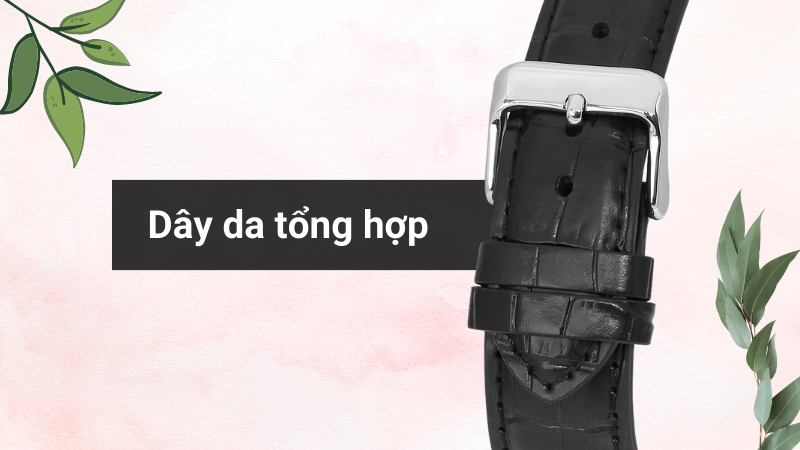 • Dây đeo đồng hồ được làm từ da tổng hợp, tạo cảm giác thoải mái khi đeo, ôm sát cổ tay. Khung viền được làm từ thép không gỉ mạ thêm lon bền bỉ với thời gian, chống oxi hoá, chống chịu mọi thời tiết.