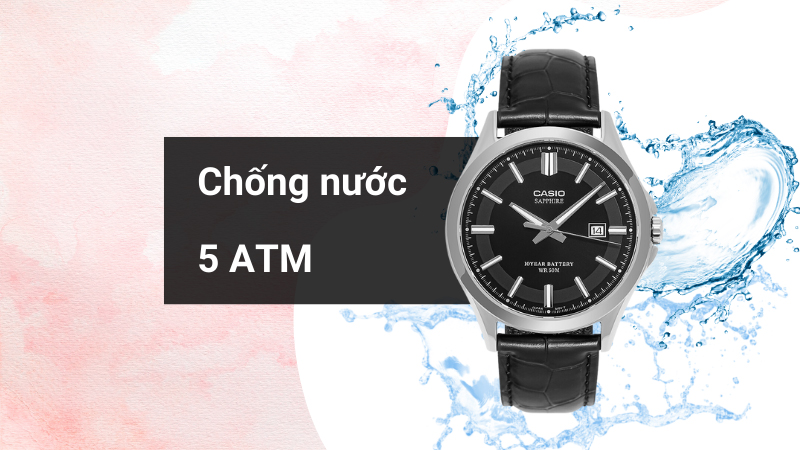 • Thoải mái đi mưa, đi tắm mà không lo hư hỏng vì đồng hồ nam này có hệ số kháng nước là 5 ATM. Không nên đeo đi bơi, lặn. Tuy nhiên anh em vẫn nên tránh ngâm nước nhiều vì dây da thấm hút nước, mồ hôi.