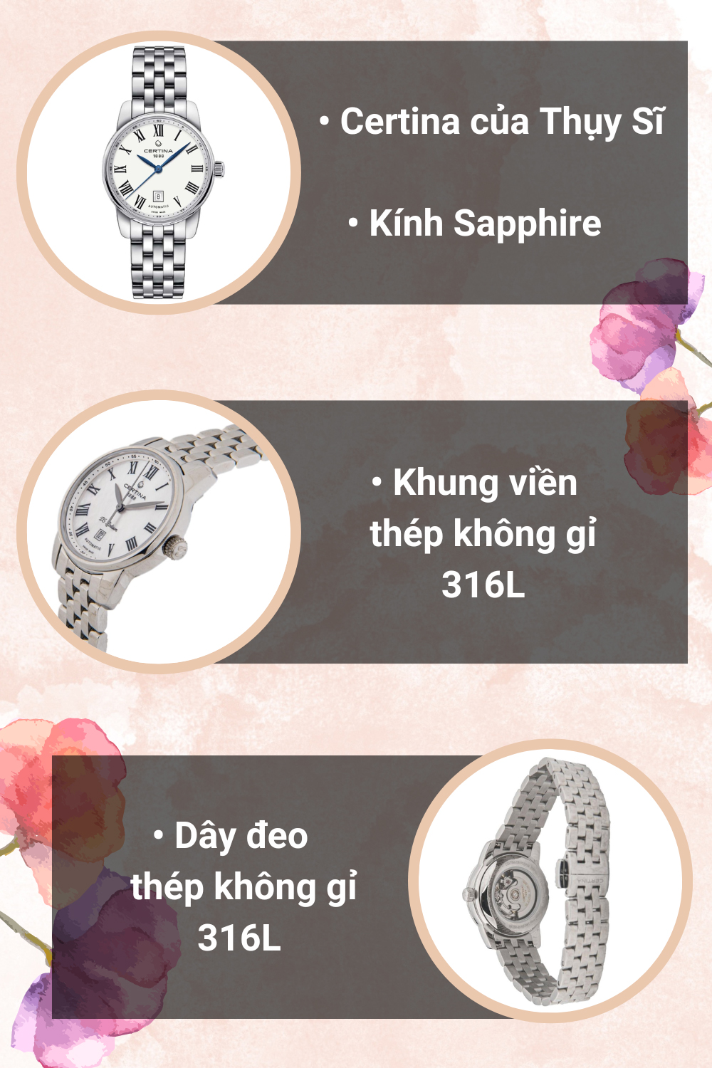 - Ngôn ngữ thiết kế đơn giản nhưng không kém phần sang trọng đến từ thương hiệu đồng hồ Certina của Thụy Sĩ