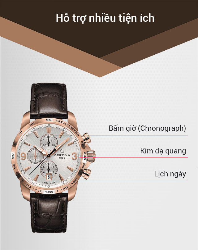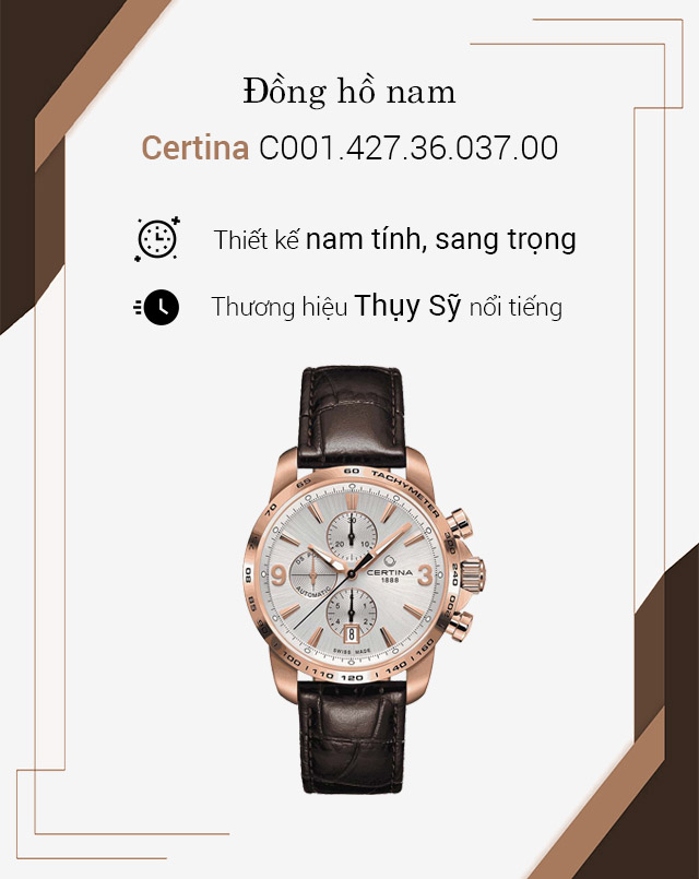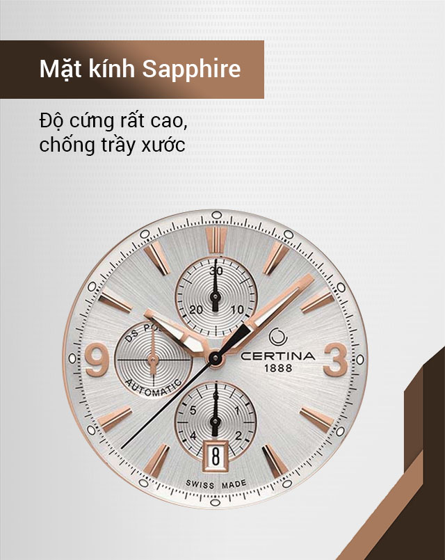 - Mang thương hiệu đồng hồ Certina nổi tiếng và lâu đời của Thụy Sĩ, được nhiều người tin dùng