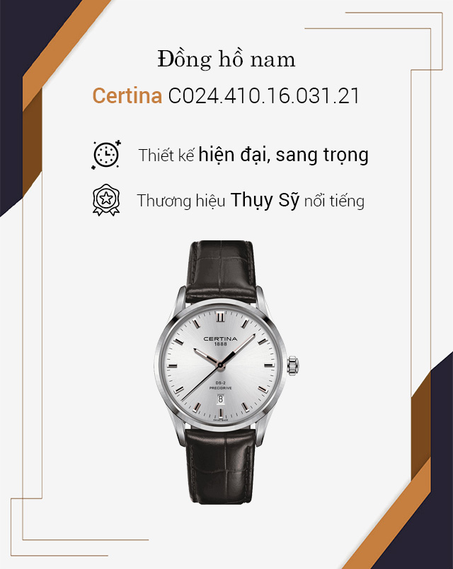 - Thương hiệu đồng hồ Certina uy tín và lâu đời của Thụy Sĩ, chất lượng nổi tiếng trên thế giới