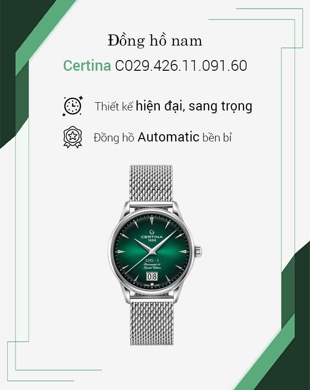 - Thương hiệu đồng hồ Certina uy tín và lâu đời của Thụy Sĩ, được nhiều người tin dùng