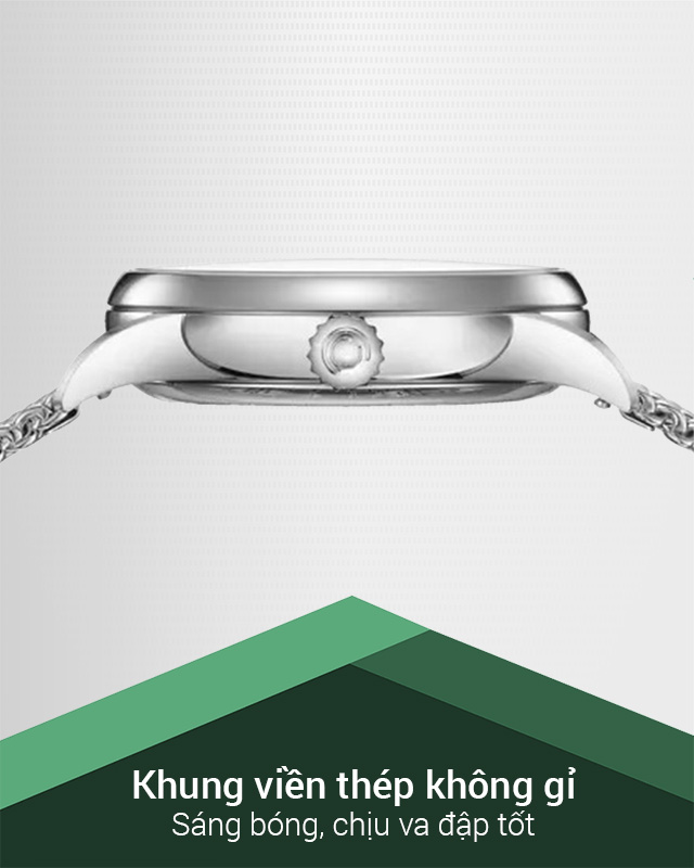 - Dây đồng hồ và khung viền được làm từ thép không gỉ có độ bền cao, chống ăn mòn, bảo vệ an toàn phần lõi bên trong