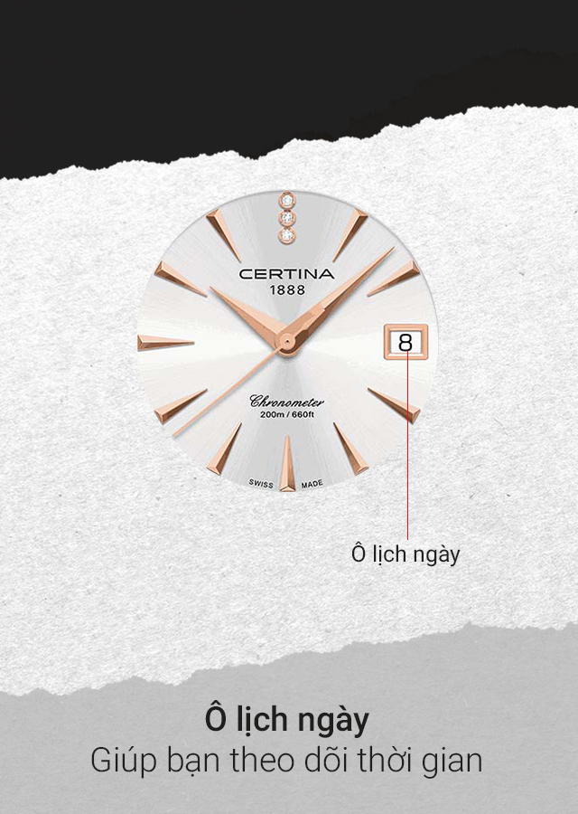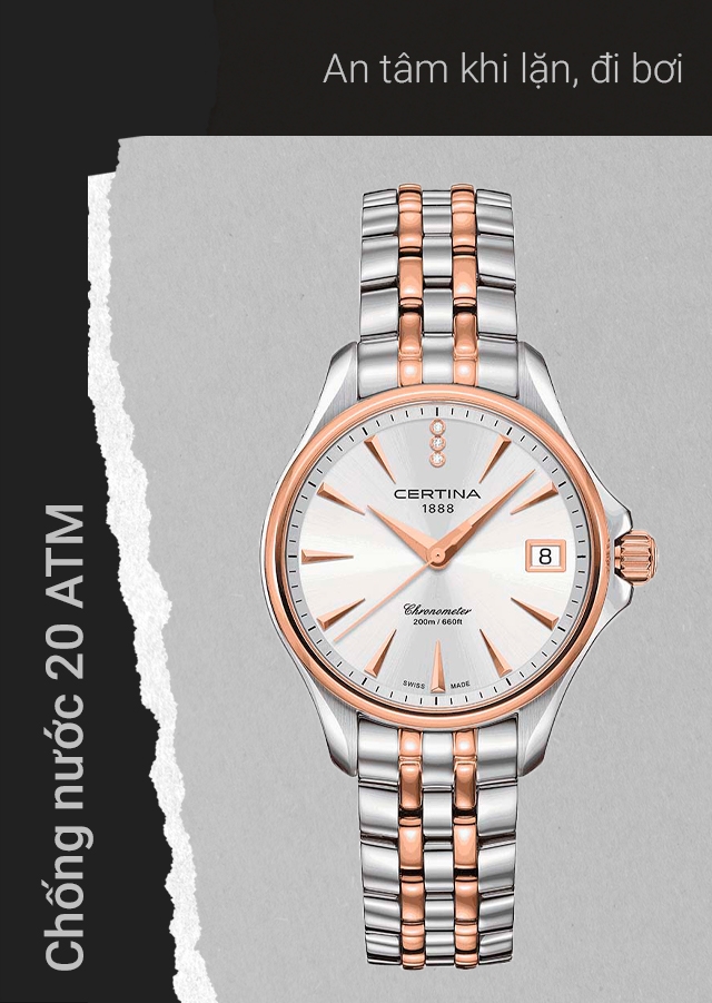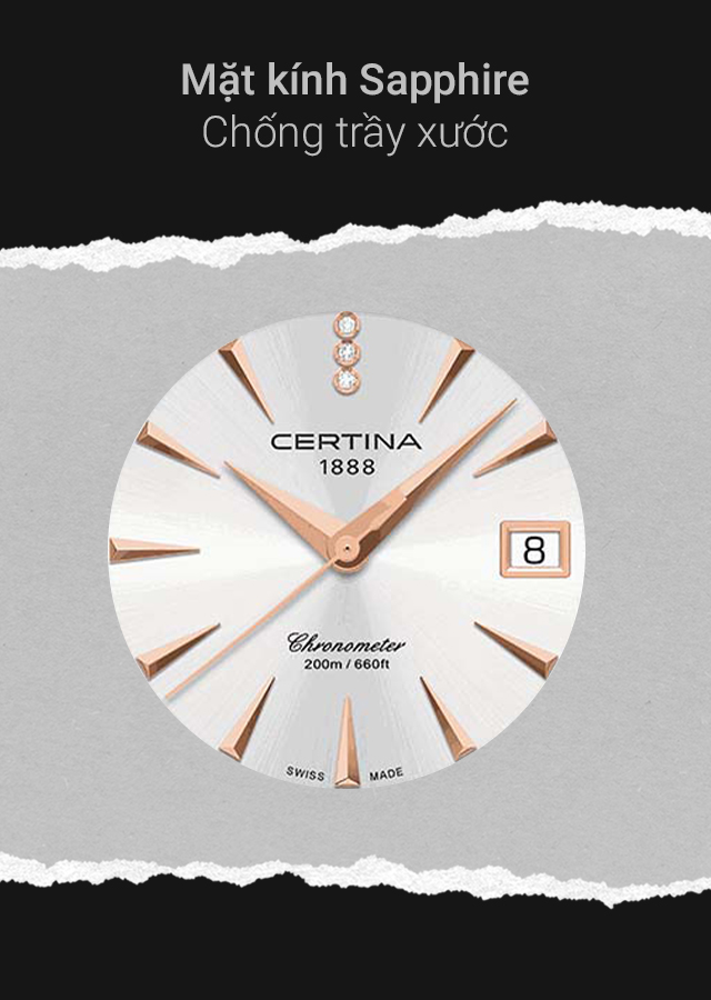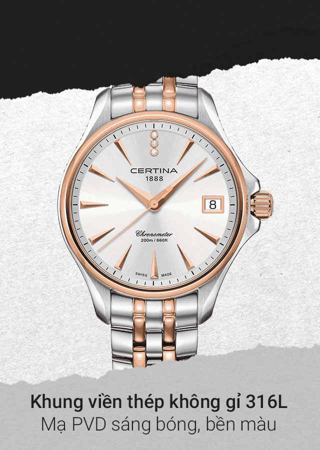 - Kiểu dáng trang nhã, cuốn hút đến từ đất nước có chất lượng sản xuất đồng hồ hàng đầu thế giới - Thụy Sĩ, thuộc hãng đồng hồ Certina