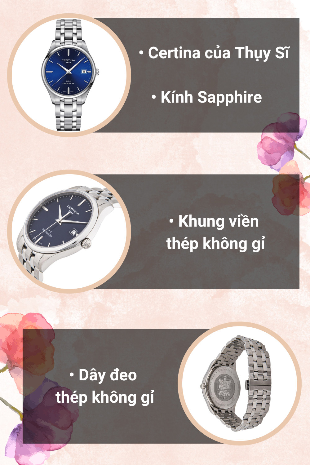 - Mang thương hiệu đồng hồ Certina uy tín và nổi tiếng của Thụy Sĩ, được nhiều người tin dùng