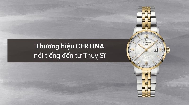 - Với hơn 130 năm lịch sử, Certina đã trở thành một trong những thương hiệu đồng hồ nổi tiếng và có uy tín đối với người yêu đồng hồ. Các sản phẩm của Certina luôn được chăm chút, hoàn thiện một cách tinh xảo và thời thượng, mang đến sự hài lòng cho bạn khi đeo đồng hồ trên tay.