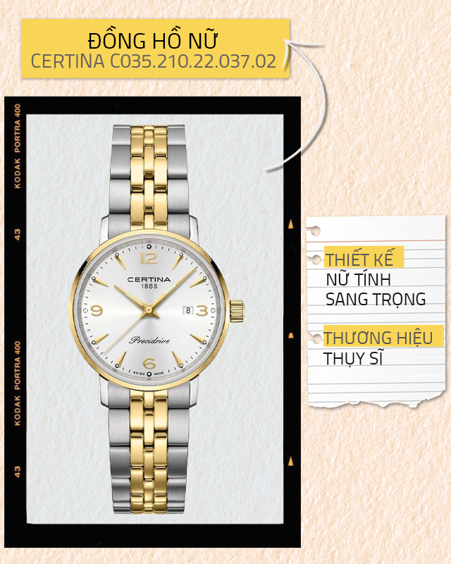 - Là thương hiệu đồng hồ đến từ Thụy Sĩ, hãng đồng hồ Certina luôn tạo sự sắc sảo và tinh tế cho mọi sản phẩm, điển hình là mẫu đồng hồ nữ Certina này