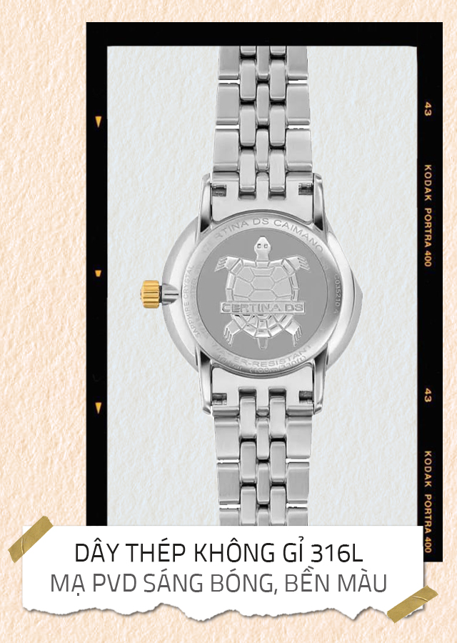 - Đồng hồ có khung viền và dây đeo được làm từ thép không gỉ 316L, dễ dàng đánh bóng. Lớp mạ PVD nổi bật ở khung viền và phần dây đeo cho độ sáng bóng mang đến vẻ ngoài sang trọng và đẳng cấp, khả năng chống ăn mòn hiệu quả hơn