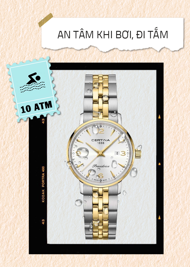 - Người đeo có thể an tâm mang sản phẩm trên cổ tay khi tham gia bơi lội, đi tắm, đi mưa và rửa tay với hệ số chống nước là 10 ATM, không nên đeo khi đi lặn