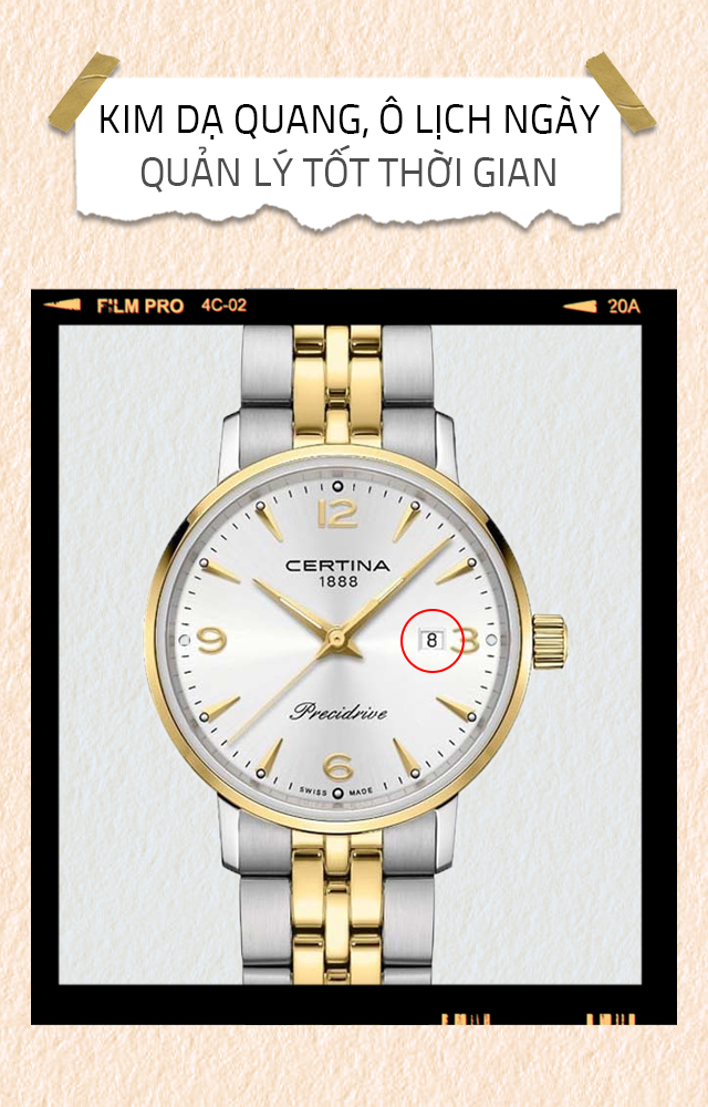 - Tiện ích lịch ngày, kim dạ quang giúp người đeo chiếc đồng hồ nữ này quản lý thời gian chỉn chu hơn ở mọi hoàn cảnh