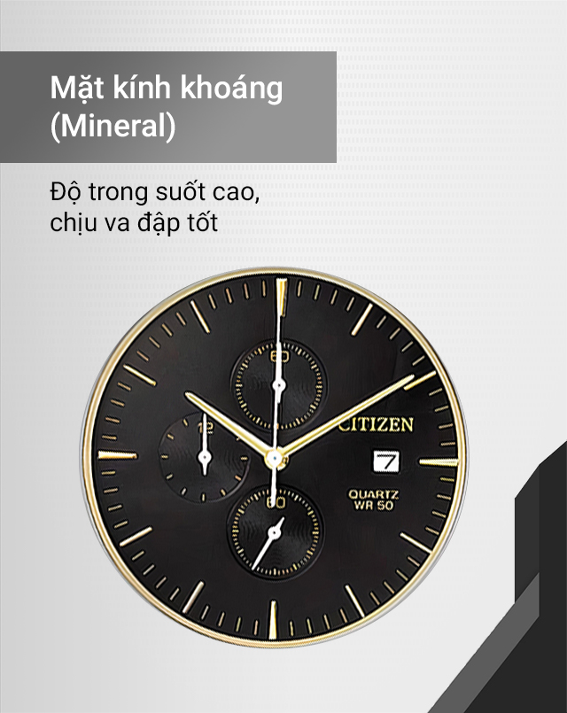 - Mặt kính có độ trong suốt cao, chịu lực tốt, không lóa mắt khi xem giờ dưới nắng.