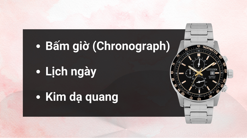 • Ngoài những tính năng cơ bản như hiển thị lịch ngày, kim dạ quang, và chức năng bấm giờ (Chronograph) hữu ích.