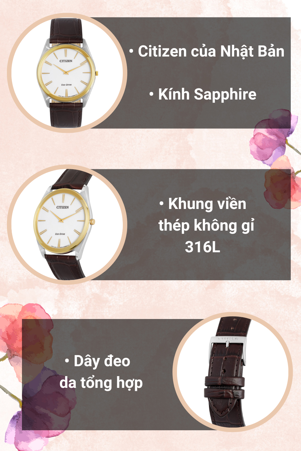 - Với thiết kế thời trang, sang trọng, chi tiết máy hoàn hảo, độ chính xác cao, đồng hồ Citizen luôn đi đầu trong các đột phá về công nghệ và giá cả.