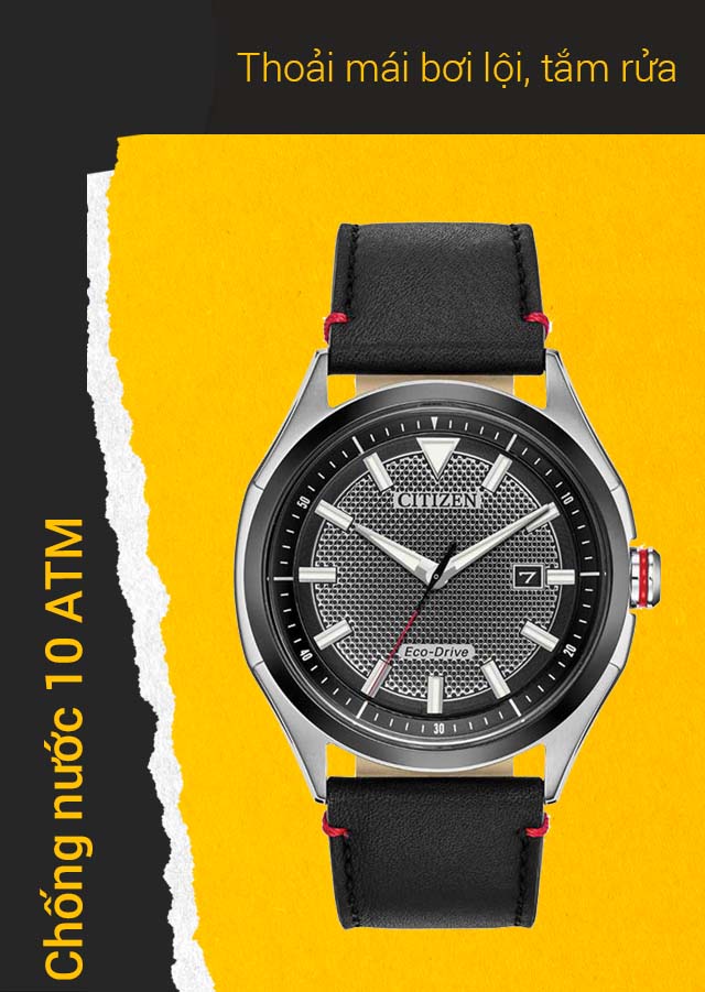 Khả năng chống nước tới 10 ATM, đeo đồng hồ Citizen khi tắm, bơi lội mà không lo bị vô nước. Không đeo khi lặn.
