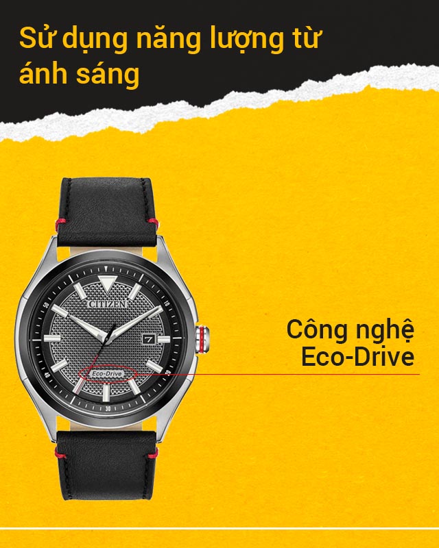 Đồng hồ nhận năng lượng từ các nguồn sáng như mặt trời, đèn,... để hoạt động, sở hữu công nghệ Eco-Drive hiện đại.