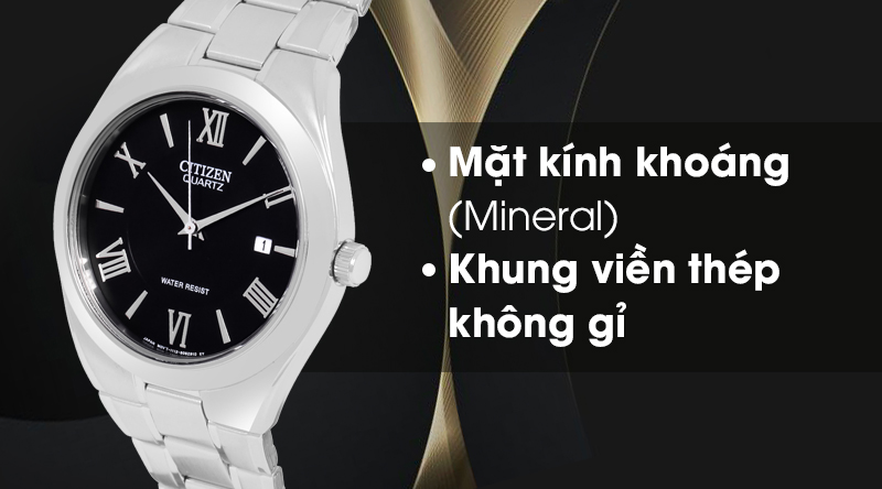 - Mặt kính đồng hồ nam trong suốt, ít nứt vỡ, hạn chế trầy xước khi va chạm.