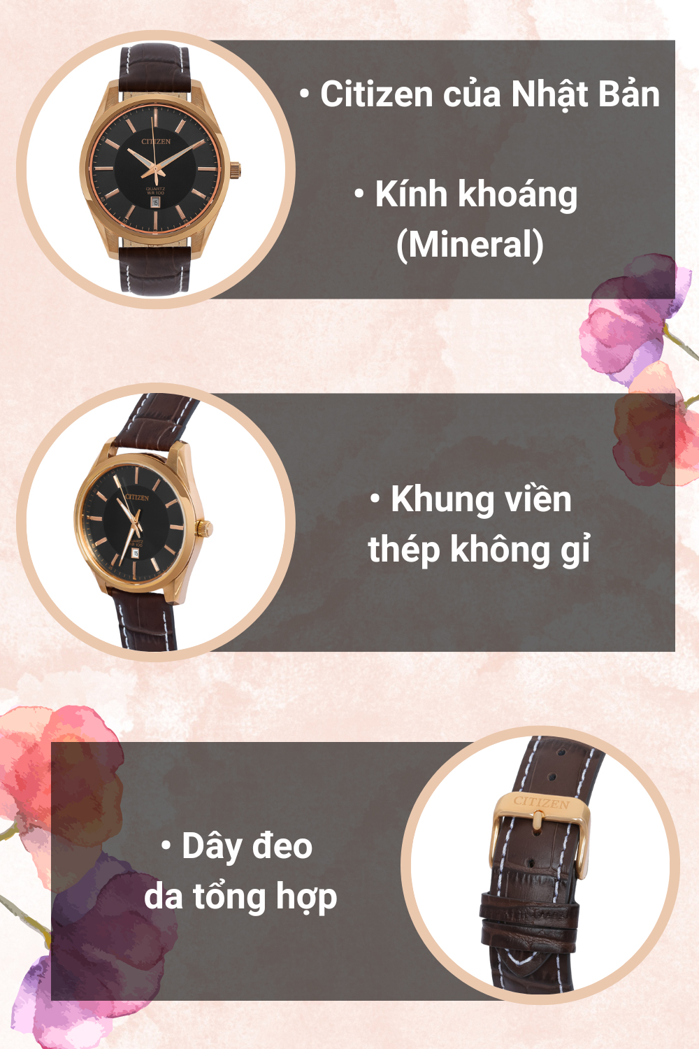 - Với thiết kế thời trang, sang trọng, chi tiết máy hoàn hảo, độ chính xác cao, đồng hồ Citizen luôn đi đầu trong các đột phá về công nghệ và giá cả.