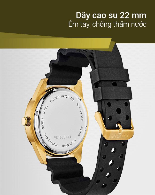 Dây đồng hồ Citizen có trọng lượng nhẹ, không thấm nước, cho cảm giác dễ chịu khi đeo.