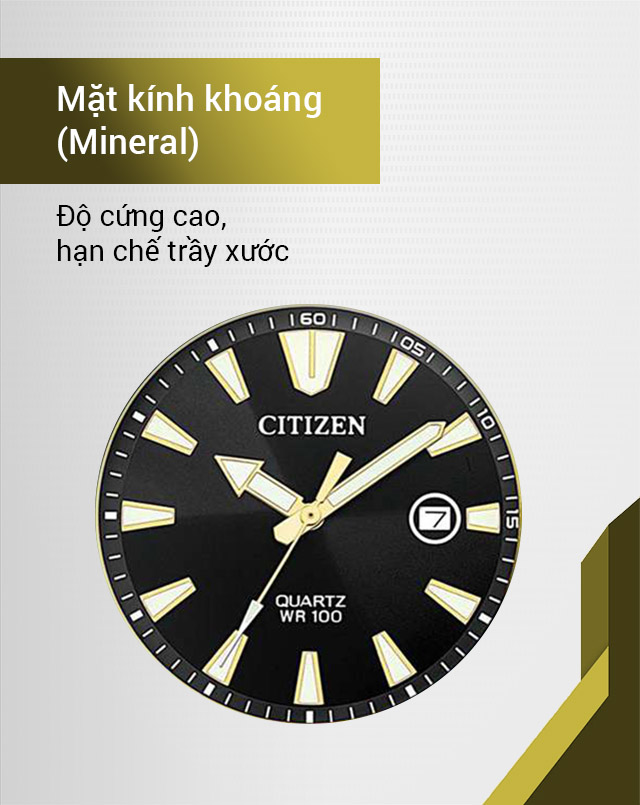 - Mặt kính có độ trong suốt cao, độ cứng khá, không lóa mắt khi xem giờ dưới nắng.