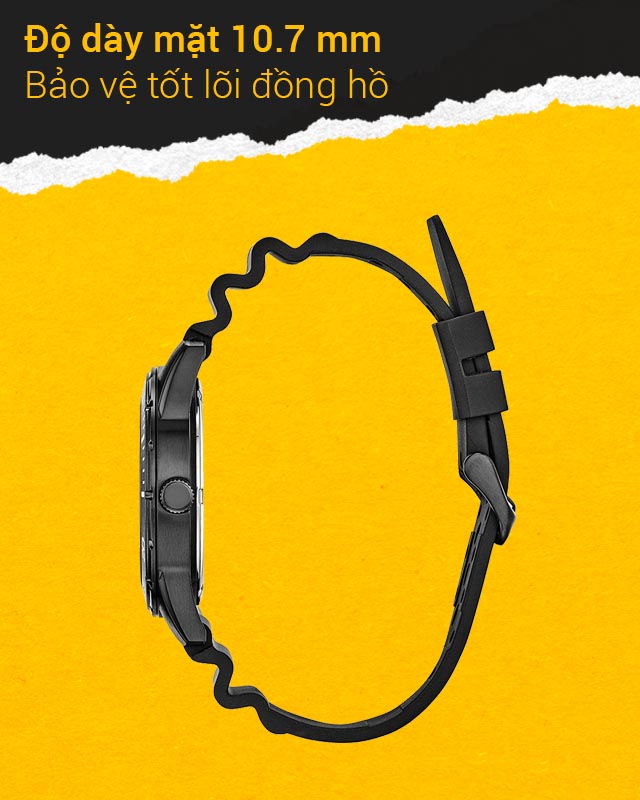 đồng hồ đen chủ đạo, rất đẹp, phối đồ cho cảm giác sang trọng, vòng cao su nhưng mang lại cảm giã vừa vặn, đáng đồng tiền.