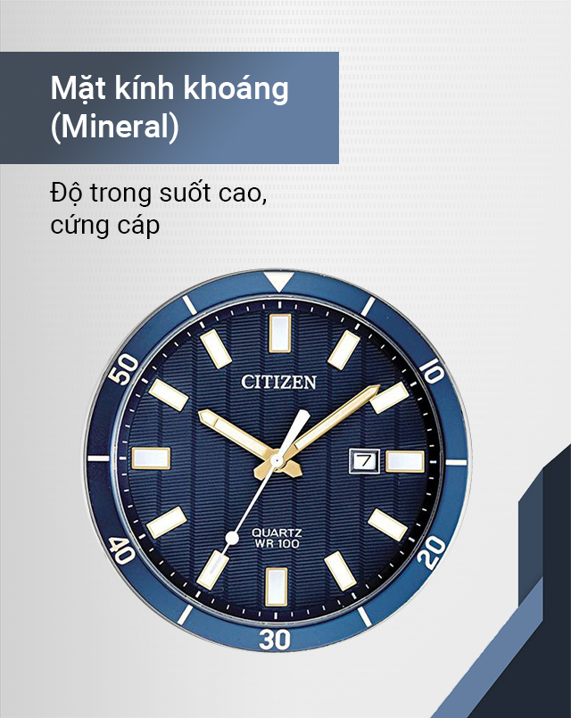 - Mặt kính chiếc đồng hồ quartz này có độ cứng khá, độ trong suốt cao, ít nứt vỡ khi bị va đập vừa phải.