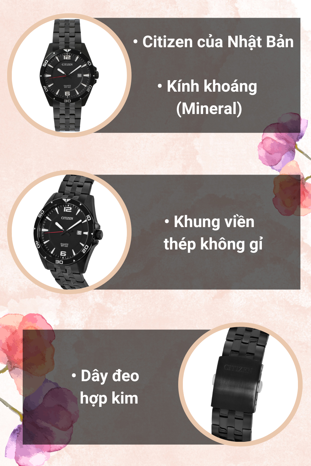 - Với thiết kế thời trang, sang trọng, chi tiết máy hoàn hảo, độ chính xác cao, đồng hồ Citizen luôn đi đầu trong các đột phá về công nghệ và giá cả.
